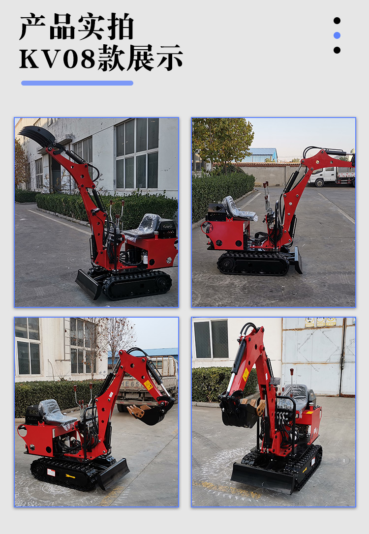 08型小型挖掘機搭載常柴單缸發動機動力強勁、噪音小、排放低、油耗少、維修方便,配置高精準的綜合儀表監控系統,實時監控設備各項性能參數,性能穩定,工礦適應力強.